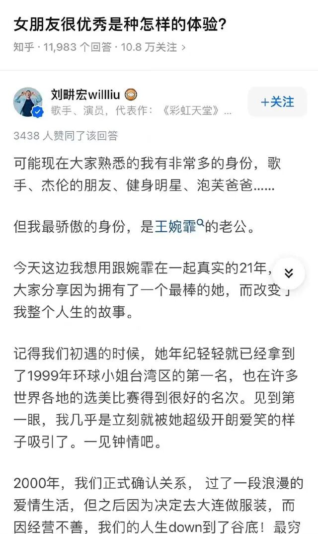 另外,在2021年的一篇问答上,刘畊宏写过一篇文章,详细地告诉众人,遇到王婉霏的他是多么的幸运。