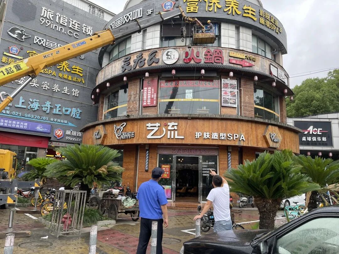 违规设置的户外广告、店招店牌不仅存在安全隐患,还破坏城市景观。宝山区大场镇面积约27.22平方公里,是上海人口密度最大的一个镇之一,沿街商户约2800余户,登记在册的广告牌约有3200多块,是宝山区广告牌最多的街镇。