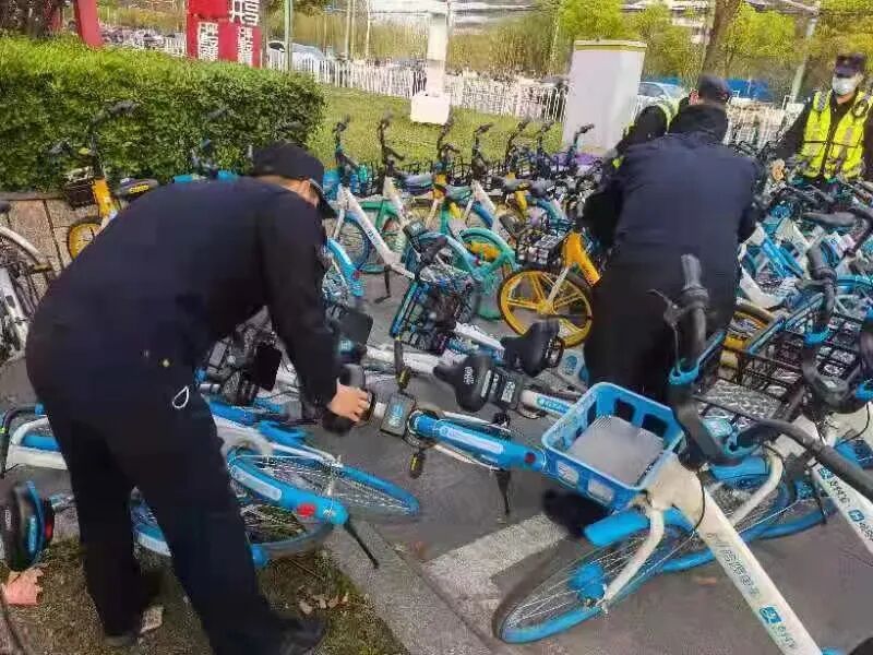 每个探头均配备对应的网格化巡查人员,他们通过移动终端设备可查看详情, 执法队员也会马上通过录音电话和微信工作群两种方式告知相应的互联网租赁自行车运营企业,限定两小时清理,恢复道路通畅。