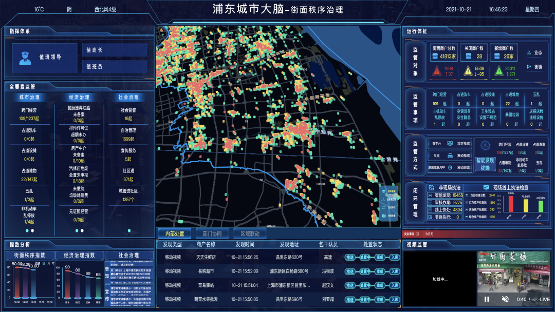 浦东城管大脑--街面秩序治理大屏