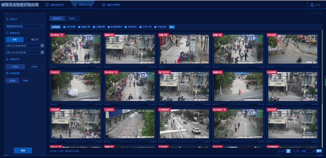 宝山区街面辅助治理系统已经实现城市管理的户外广告、店外经营、游摊小贩等18种违法类型的智能分析和识别,在主动将问题推送给平台的同时,及时固定违法证据。