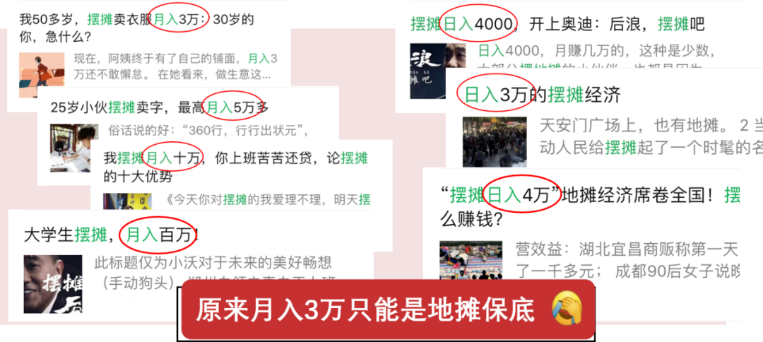 还有人向广大青年发出,“地摊经济”=“高大上”,摆摊吧!后浪,迎娶“白富美”,进阶“高大上”就在“地摊经济”。