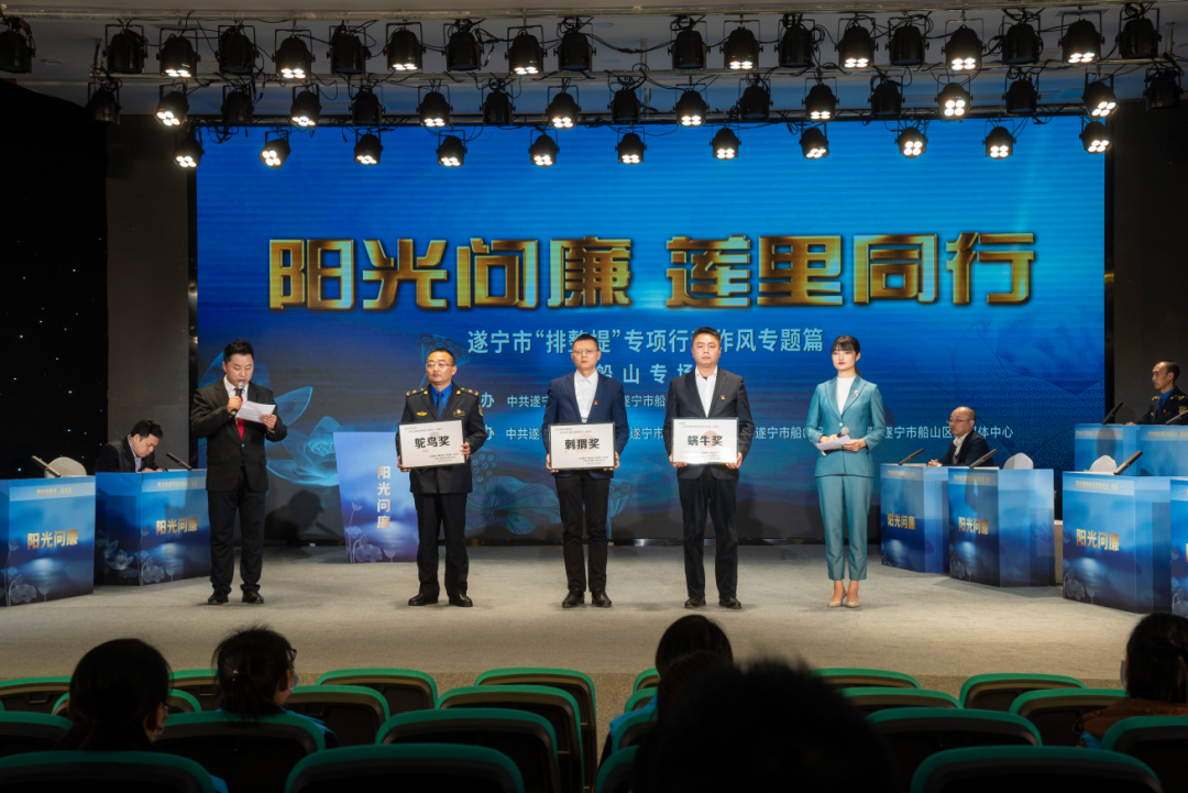 作为本期节目的一大“亮点”,节目组还向三家被问廉单位颁发了特别的“廉礼”。其中,船山区综合行政执法局因城市管理不主动作为被授予“鸵鸟奖”,船山区住房城乡建设局因办理热线搪塞应付四次退单被授予“刺猬奖”,老池镇因解决群众诉求行动迟缓被授予“蜗牛奖”。节目组希望以此为戒,提醒船山区党员干部时刻牢记党的宗旨、保持清醒头脑,真正把群众冷暖放在心上,让为民服务更有质感。