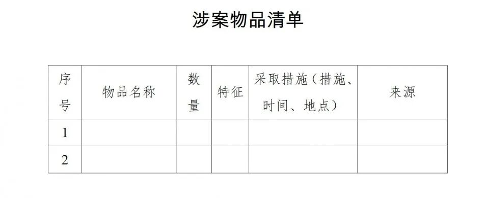 涉案物品清单