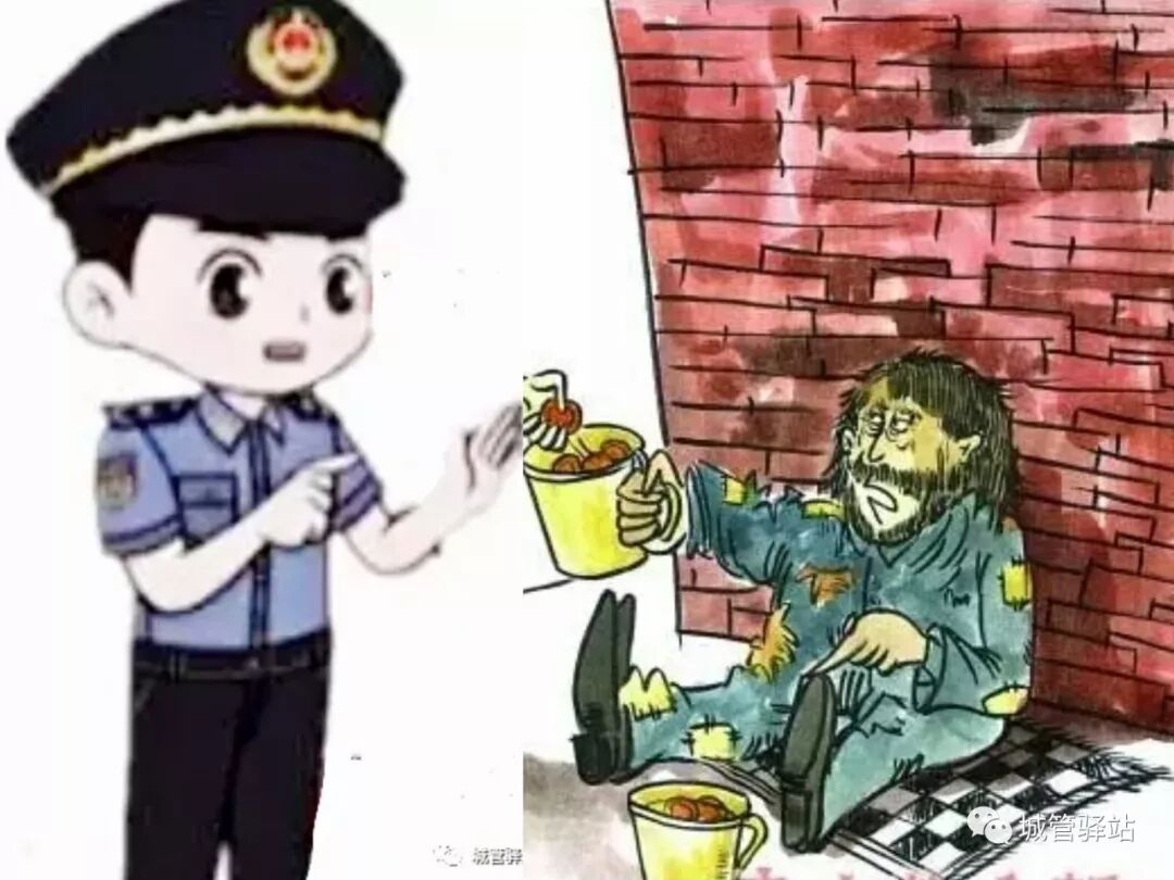 一个乞丐对一名城管说:
