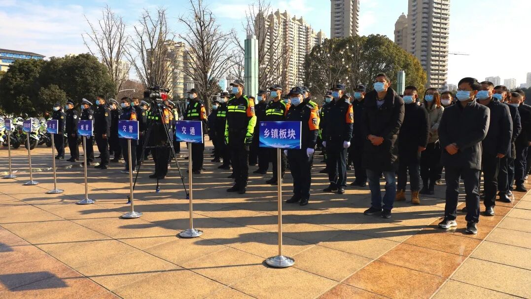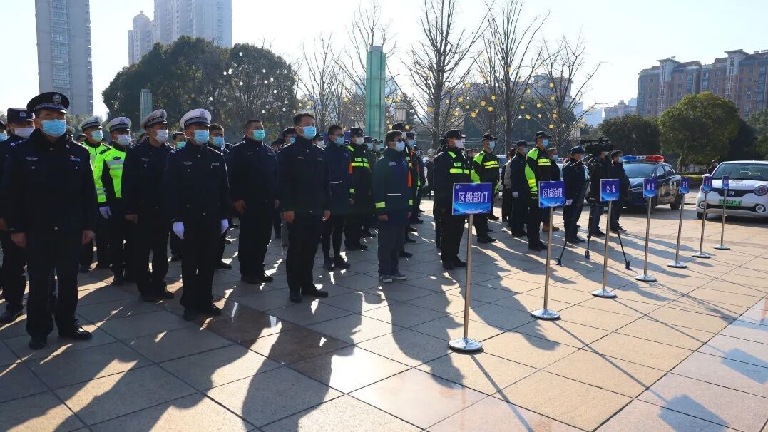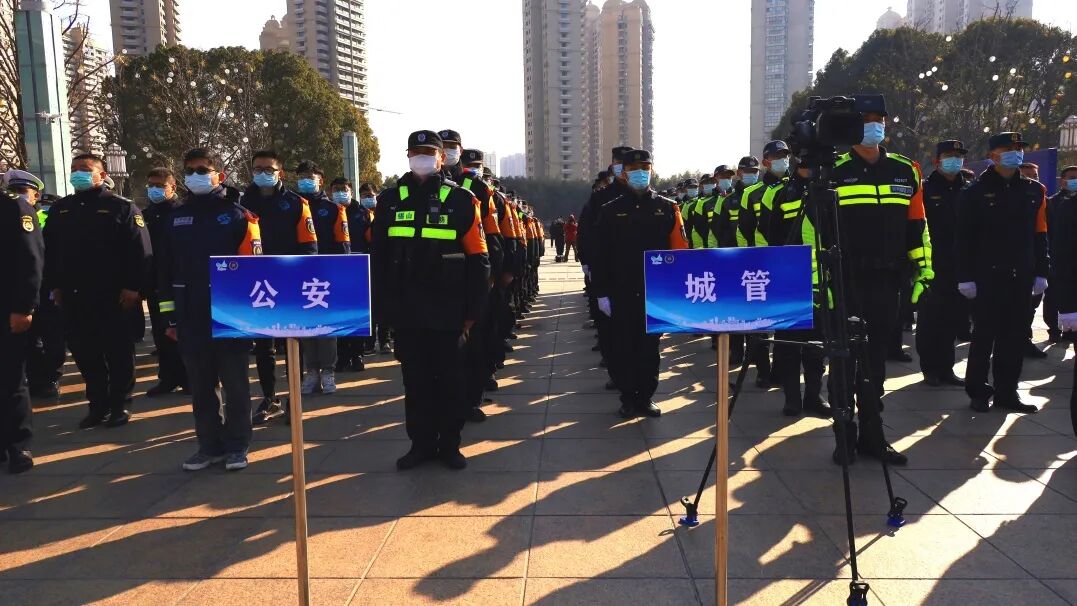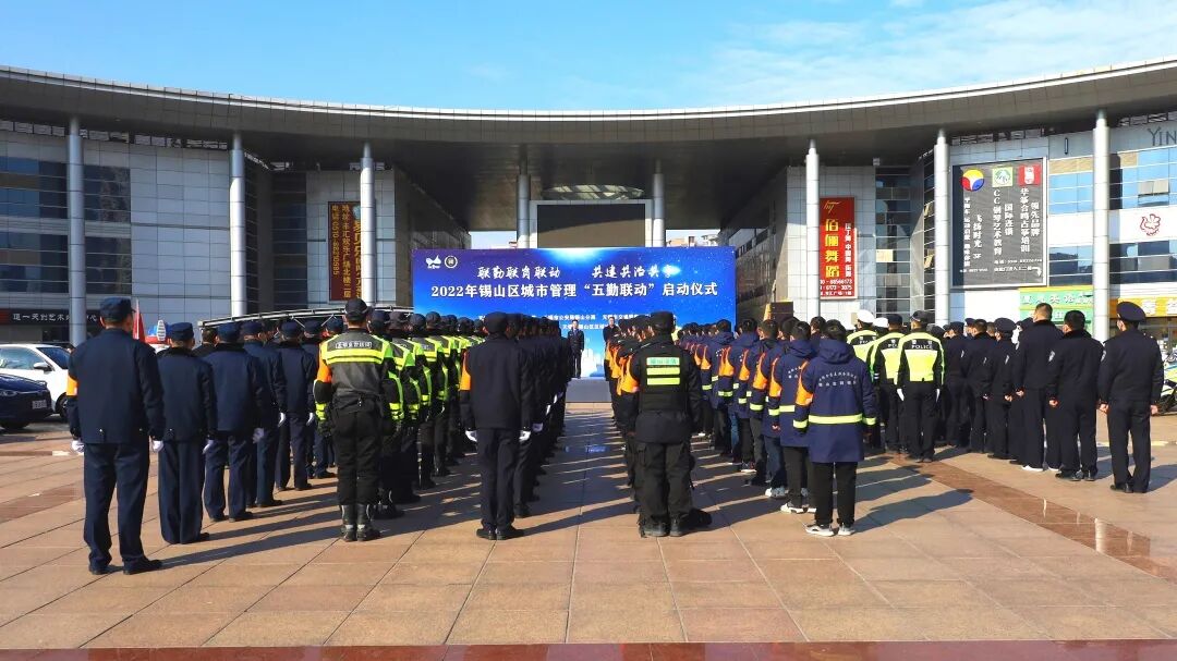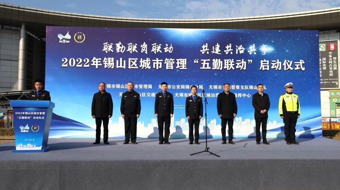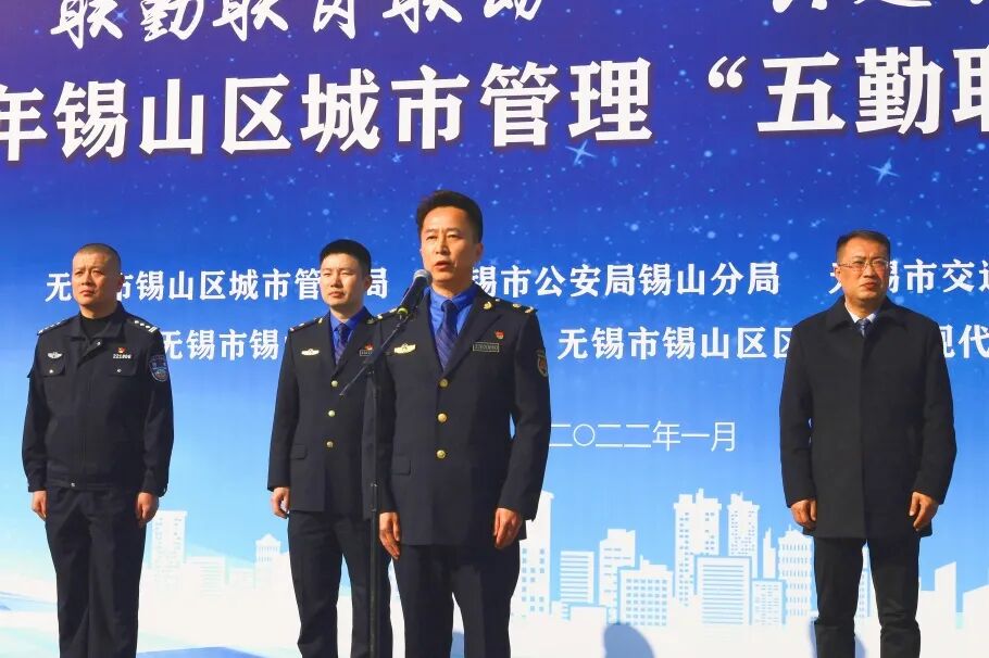 无锡市城市管理综合行政执法局副局长范洪强宣布锡山区城市管理“五勤联动”队伍2022年首次联合行动正式开始。