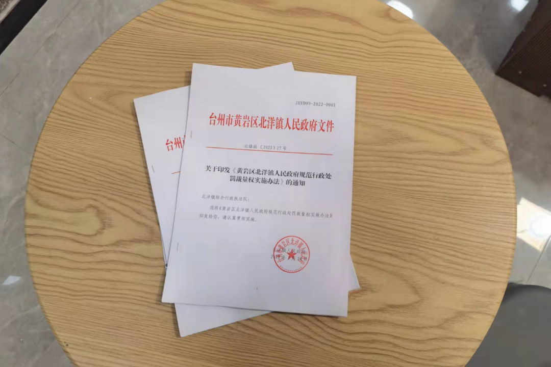 “一支队伍管执法”的核心是赋权赋能镇街、提升镇街统筹能力。也就是说,今后镇街也有了赋权事项的行政处罚权及相关行政监督检查、行政强制职权。《黄岩区北洋镇人民政府规范行政处罚裁量权实施办法》出台,是全市首个以赋权乡镇名义出台的行政处罚裁量权实施办法,由镇街的“一支队伍”来具体实施。