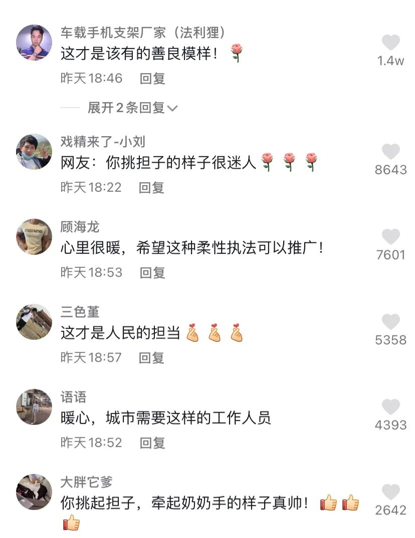 同事李先生介绍,当时老人卖菜的地方不能摆摊,同事就帮忙转移,因感到老人手凉,还专门找了个暖和的地方帮老人摆上,都是发自内心的帮助。