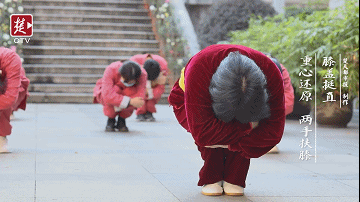 据韦丹主任介绍,“易筋经十二势导引法”其实一共13个动作,第一个动作是预备势,主要打通任督二脉。后面十二势,每一势对应一个脏腑。