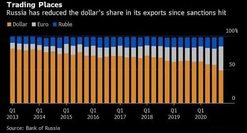 与此同时,事情的另一个新进展是,美国金融网站Zerohedge5月1日报道,俄罗斯多年以来,去美元化的努力达到了一个里程碑,因为以美元结算的出口份额首次跌破50%。应该说,俄罗斯拒绝美元在人们期待已久后,正在发生。