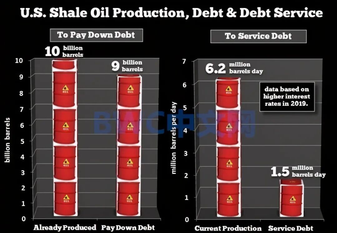 另据卡利尼什能源顾问公司分析,到2023年,美国将有2400亿美元的长期与能源生产有关的债务到期,而其中至少约90%与页岩油有关。而这些还并不是全部债务。分析师称,最终美国页岩油业或需要付出90亿桶页岩油的产能来还清全部的债务,这几乎相当于10年来的产能。Zerohedge数周前就报道称,美国石油的庞氏金融骗局或正被揭开。