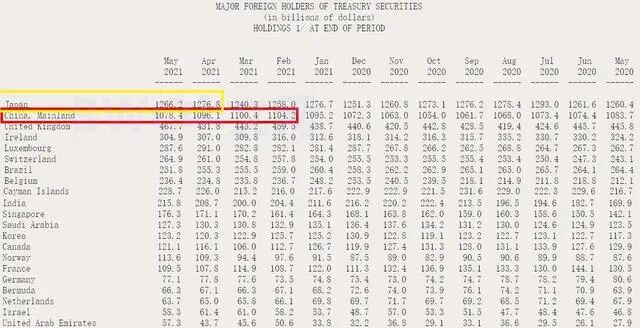 再以日本为例,最新数据显示,截至5月的10个月有间,日本8次减持了美国国国债。作为美债最大持有国,日本持有总量已经降至1.266万亿美元。
