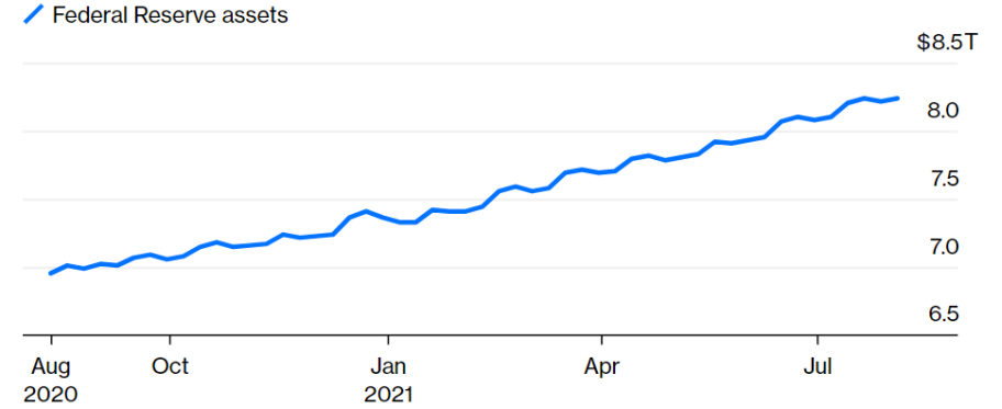 截至8月12日,美联储资产负债表已经扩张至创纪录的约8.2万亿美元的新高。尽管近期美联储缩表,收紧QE的预期不断增强,但法国兴业银行的SubadraRajappa预计,未来12个月内,即便是缩减购债规模,美联储持有的资产可能还会将增加1万亿美元。换言之,美联储长期不断滥用美元货币地位的现象是不会停止的,美联储或继续开动美元印钞机。