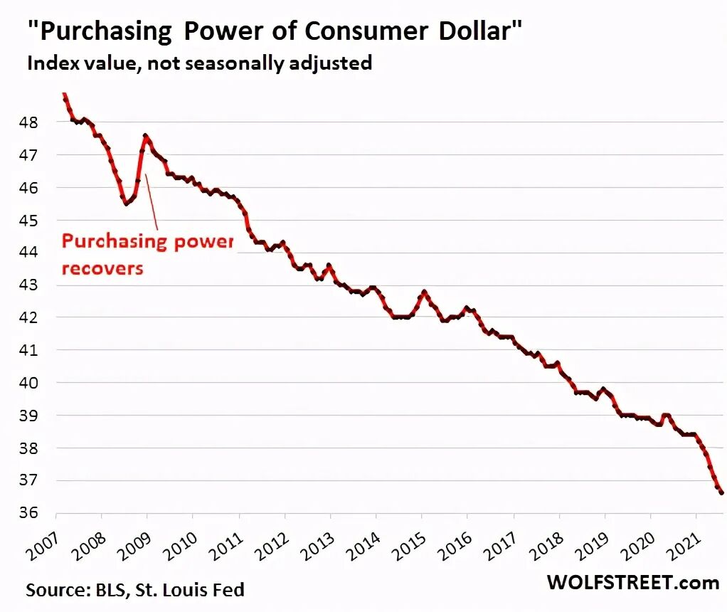 CPI衡量的是美元的购买力损失,7月份,这个购买力在当月又下降了0.5%,按过去三个月的年化率计算,下降了8.6%,很显然,在未来5-10年,美元将会陷入严重困境,且是自1981年6月以来的最快下降速度。