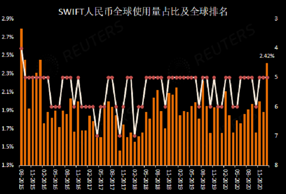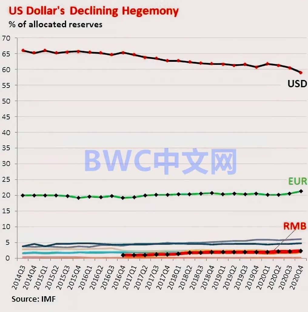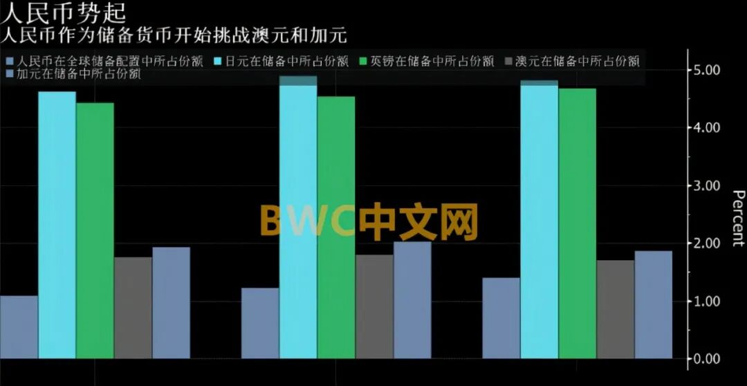 据国际清算银行数据,截止11月,全球有80%的央行都在从事研发或正在计划研究或已开始某种形式的数字货币工作。而现在,除了多个发达市场不断向人民币靠拢外,BWC中文网财经研究团队还认为,人民币可能将“王者归来”,比如,美媒CNBC日前援引摩根士丹利的报告预测,人民币将在十年内成为世界第三大储备货币,高盛指出,人民币的国际货币储备地位正在快速上升。