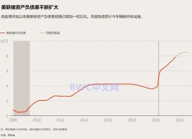 目前,美联储的资产负债表较2020年3月新冠病毒危机以来,美联储已将其资产负债表扩大了635%,德意志银行表示,按照目前的速度印钞,到2022年3月,美联储资产负债表将扩张至9万亿美元。