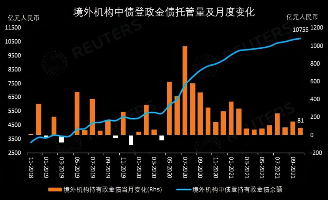 根据路透社在2月25日援引EIKON终端数据,最近几日多次出现人民币额度几乎被全部调用的情况。数据显示,在最近的一个月内,包括全球央行在内的国际机构投资者就净增持人民币主要品种债券达500亿元,中国国债已经成为了他们的投资首选,截至2月,外资持有量已超2.5万亿元。