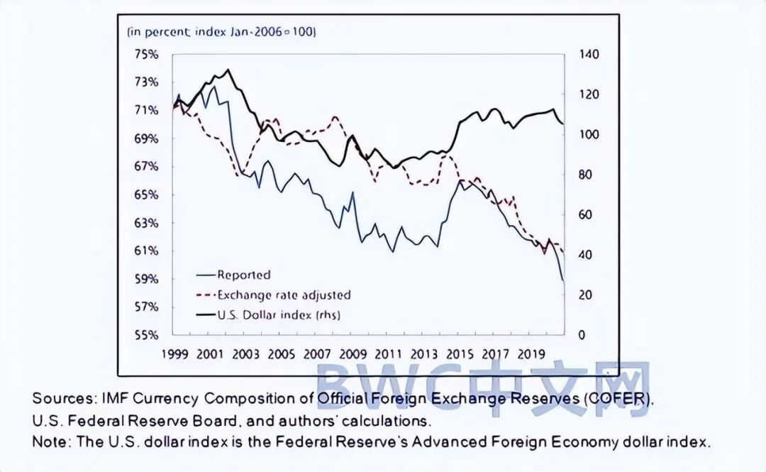 这就导致了,作为世界储备货币的美元将发生重置。IMF最新数据显示,美元在全球外汇储备中的比例在自本世纪以来从73%下降到58%。而美元在全球储备货币中减少的份额也直接说明,全球去美元化的进程在加速。特别是在美元动辄就开启一系列金融限制,并且为美国市场轻松获得全球财富,制造不公平货币现象的背景下,全球去美元化的潮流似乎不可阻挡。
