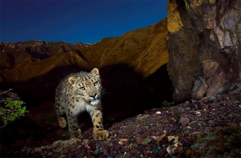 最终,雪豹“丹吉尔”还是没能赶走狼群,自个儿带着2只幼崽搬了新家,到更高的山上找了一处安全舒适的洞穴居住。