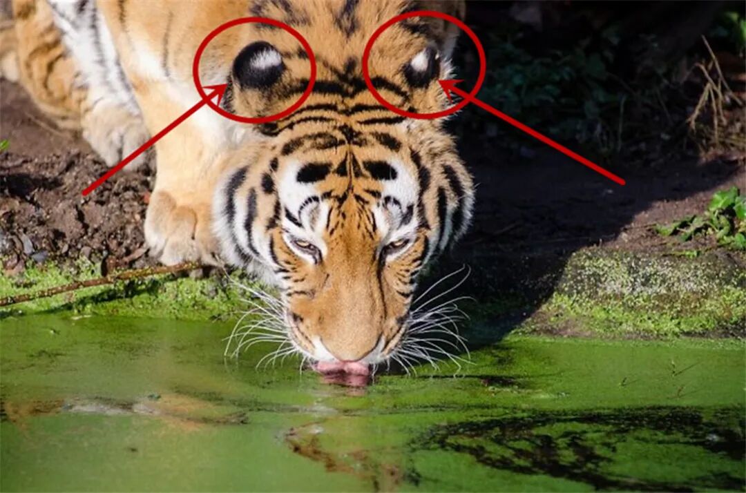 当猎物看到东北虎耳朵上的大白斑时,也许会误认为有两双眼睛盯着自己,最终由于惊慌失措,忘记逃跑而落入虎嘴。