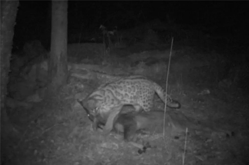 01发现1只“山彪”捕猎毛冠鹿,吃了近1小时,夜里返回继续吃