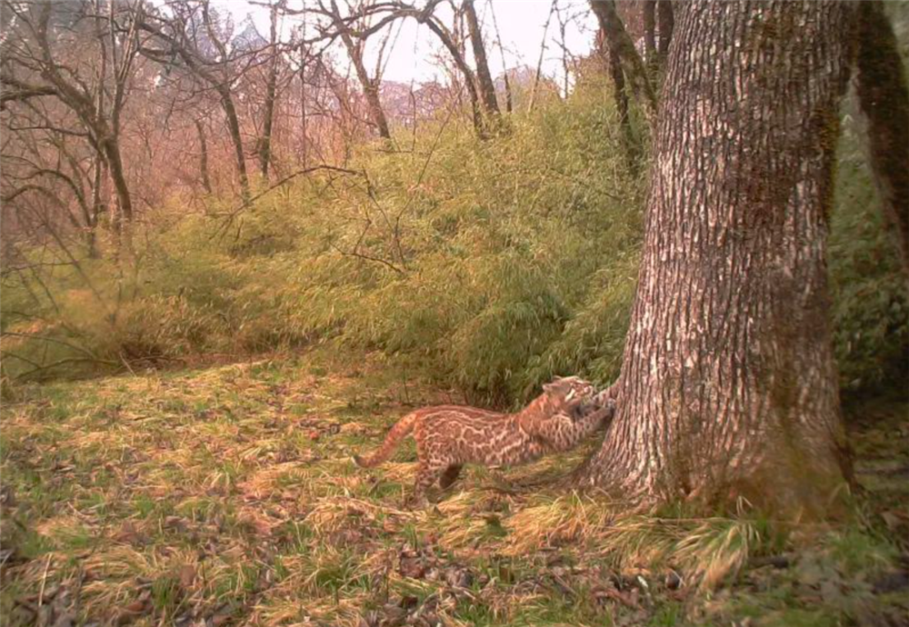 “山彪”有个习惯,总在三岔路口排泄,可能是为了做标记。还会用两只前爪,在树干上抓挠,姿势跟金钱豹相似。