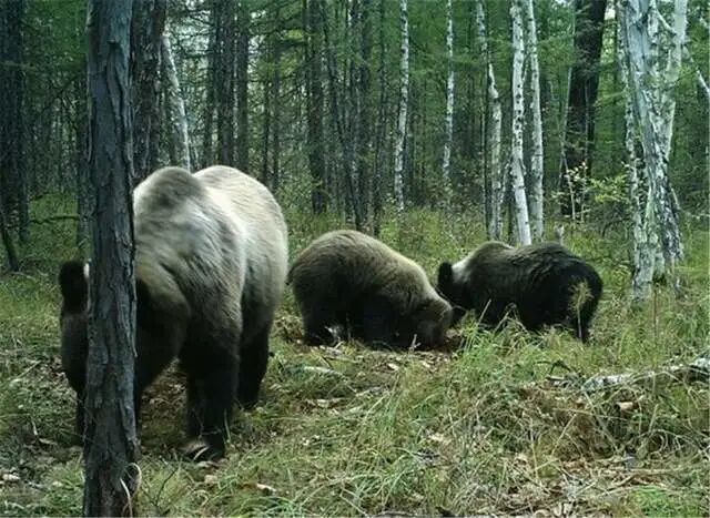 不久前,在大兴安岭接近村庄的一个山谷里,一只“人熊”出洞觅食,只见它扭动着胖乎乎的身体,向一个村子跑去,后面还跟着2只幼崽,模样呆萌,十分可爱。3只“人熊”外表为棕黑色,母熊看起来有150斤左右。