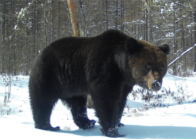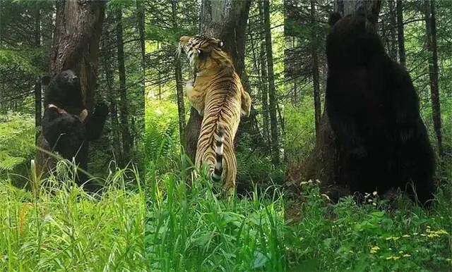 乌苏里棕熊经常食用东北虎的猎物,“虎家饭”在它饮食中占有举足轻重的地位。不过。乌苏里棕熊通常是吃东北虎的剩饭——猎物残骸,“虎口夺食”的情况十分难见。