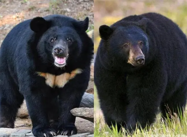可见,长得黑的熊不一定就是黑熊,不过黑熊一定是长得黑的,那么怎么区别黑熊与乌苏里棕熊呢?一个最简单的方法就是看它们胸前是否有“V”字白斑,带“V”的就是黑熊;还有就是,乌苏里棕熊的身型远比黑熊大,脑袋大,嘴巴长。