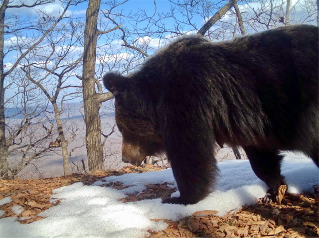 一旦觉察到危险,这些冬眠中的乌苏里棕熊随时都会醒来;当然,遇到温暖的日子,它们也会醒来,到洞外找些“零食”充饥。