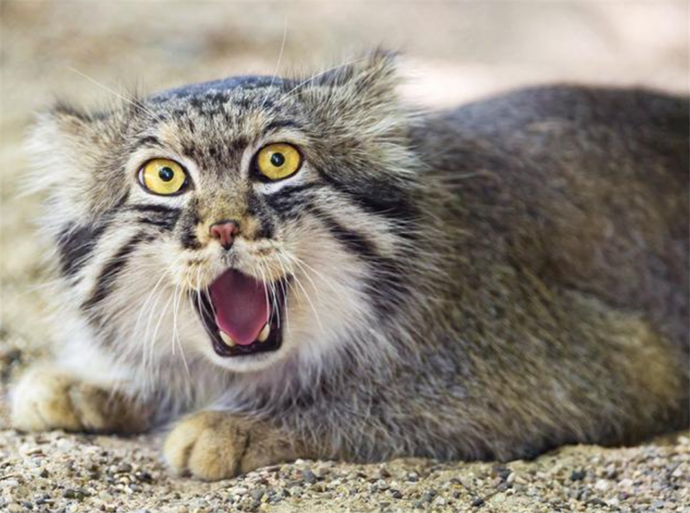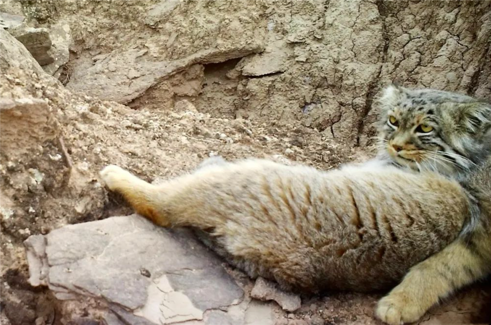 这只生活在河西走廊的雌兔狲,白天常在洞穴外边晒太阳,时而一脸严肃,时而龇牙咧嘴,时而眯着眼睛,摆出一副“厌世脸”,在它身上有着强烈的反差萌。