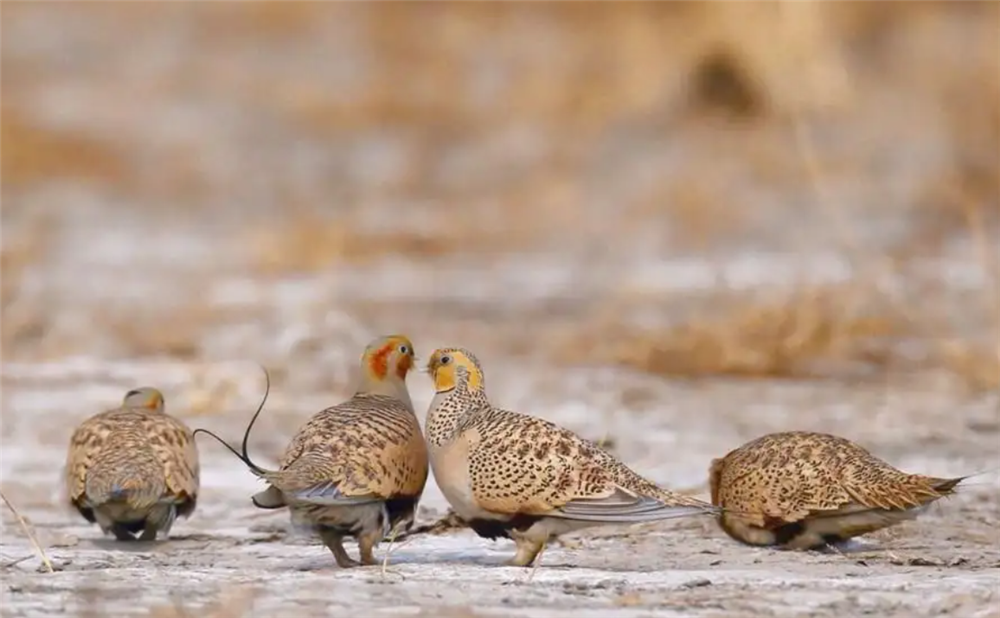 雌兔狲还算幸运,远远看见一群沙鸡在雪地里觅食,偶尔还发出欢快的叫声,有的吃饱了,就悠闲地梳理羽毛。