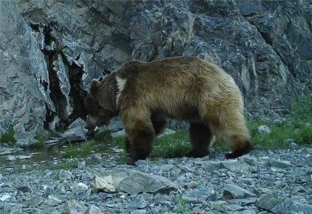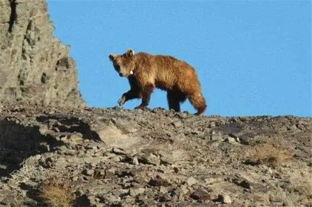 棕熊属于杂食动物,戈壁熊也不例外,其食性很杂。由于戈壁滩上植被稀少,戈壁熊见啥吃啥从不挑食,不论是灌木丛还是枯草,或者草根,还是浆果,它都来者不拒;当然,要是遇到鼠兔、野兔、草原鼠等小型动物,那可以打牙祭了。