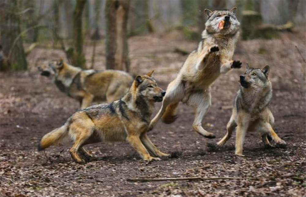 狼群团结协作去捕猎,常常大获全胜,但也有认怂的时候。例如,曾经有好几只狼,围攻一头成年公野猪,时不时嚎叫两声,想让野猪慌不择路,但公野猪偏偏不上当,淡定地走自己的路,最后狼群无从下手,只好离去。