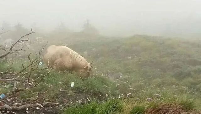 在太白山,护林员用望远镜巡线时,无意间看见天宫盆景园东南角有大型“六不像”羚牛群在活动,数量在近20头。当日下午,他们两人前往天宫盆景园,近距离观察拍摄羚牛群。