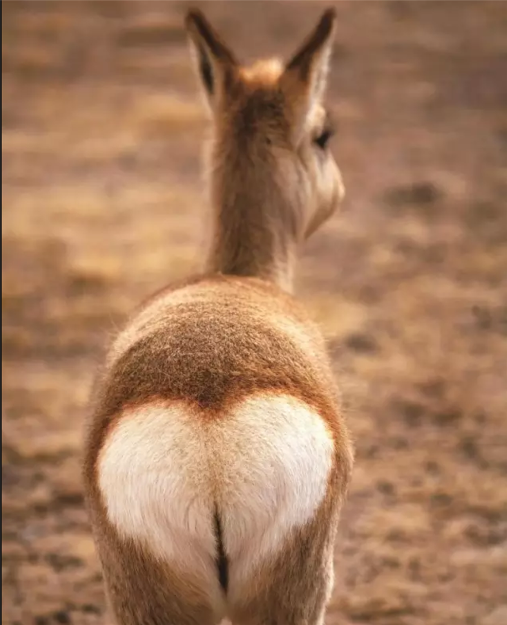 可可西里的棕色藏原羚,屁股上白色的“爱心白屁股”格外引入注目,它是由藏原羚屁股上的毛自然形成,不分雄雌每只藏原羚都有,形状十分整齐。