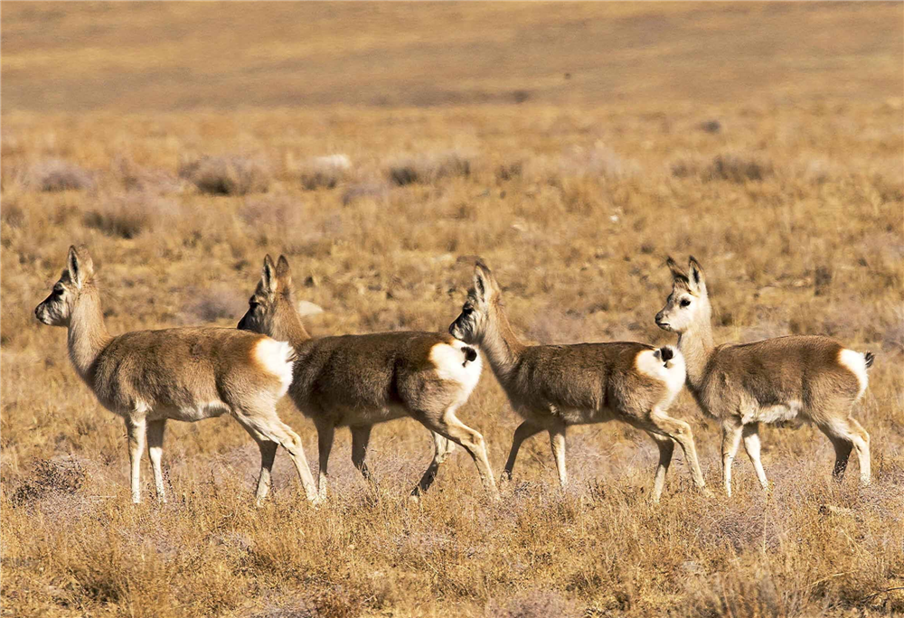 藏原羚属于牛科原羚属动物,又叫西藏黄羊、西藏原羚、原羚、小羚羊。它还有个非常形象的名字:白屁股,当地人还形象称之为“镜面羊”,这是因为它奔跑跳跃时,雪白的屁股在阳光下像悬挂在身后的一面心形镜子。