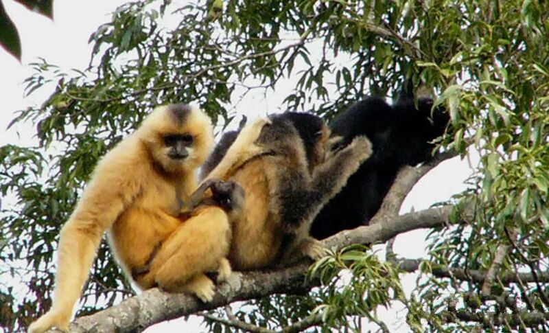 行为习惯都与人类近似。东黑冠长臂猿实行一夫二妻制,公猿在与其中一只母猿交配时,另一只怀孕的母猿会“礼貌回避”,公猿交配完后,又会回过头来关爱怀孕的母猿,用理毛等亲昵方式表示对配偶的喜爱。