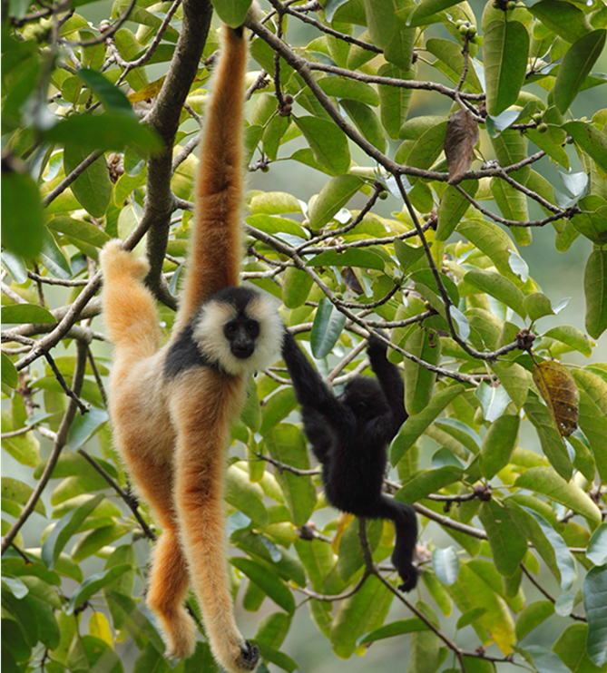 正当长臂猿的活动范围正在从中国消退时,在广西与越南交界的喀斯特季雨林中,动物专家发现长臂猿家族的一个新物种——东黑冠长臂猿。目前,在地球上,东黑冠长臂猿仅存不到200只,其中,越南境内约129只,中国境内发现5群共33只,属于极度濒危的物种。中越边境的这片喀斯特季雨林成为了东黑冠长臂猿在地球上最后的栖息地。