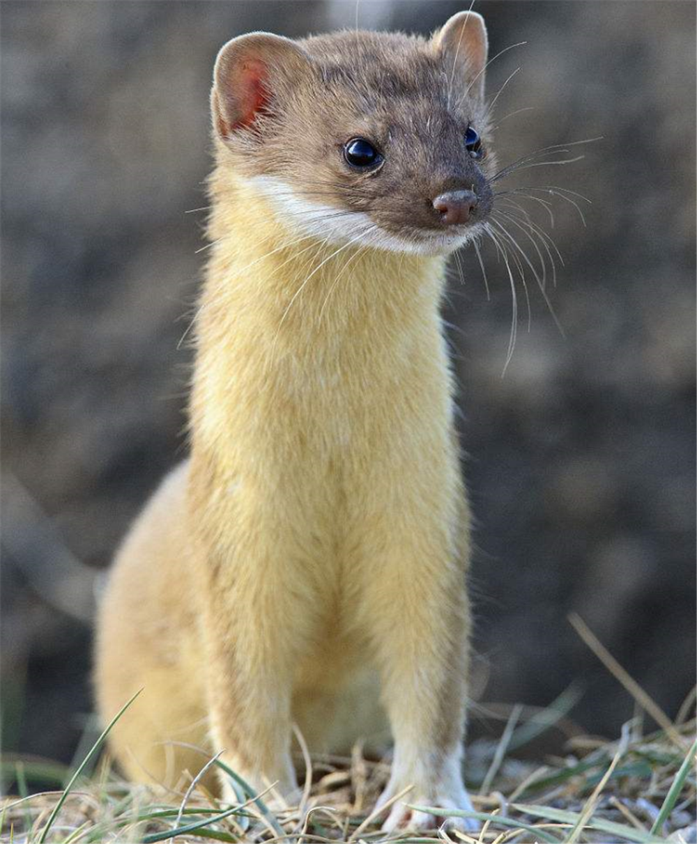 黄鼠狼的尾巴在冬天的时候会长得长一点,比较蓬松,这样子有助于它保暖,夏天的时候就会稀疏而且不容易散开。黄鼠狼的头骨是那种狭长型的,在顶部是比较平,牙齿又长又直,鼻子和前额的地方是浅褐色的。