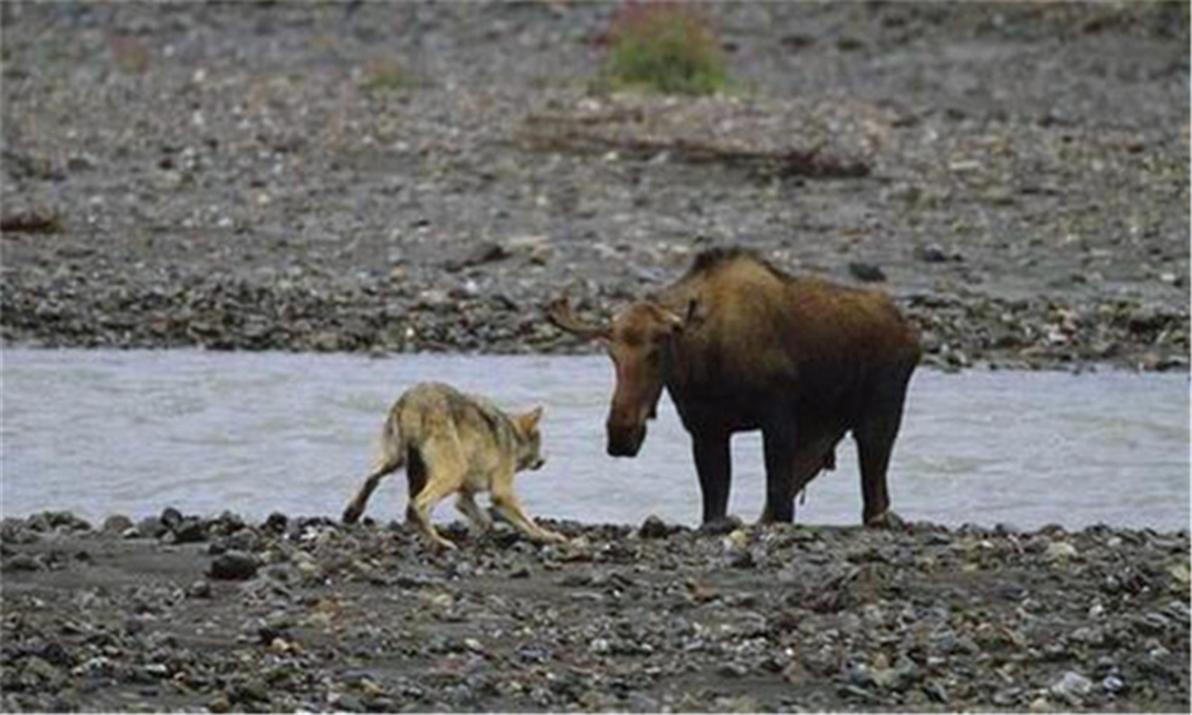 一般情况下,森林狼不会也不敢对成年驼鹿下手,面对一个庞然大物,森林狼有可能肉没吃到,就被猎物撞死或者踢伤,这种费力不讨好甚至连生命都献上的事情,棕熊可能会蛮干,但森林狼绝对不干。