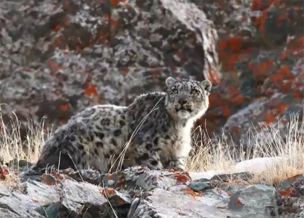 这次,一群雌性盘羊正在山地上觅食,四周一片宁静,没有料到一只雪豹借助岩石的掩护,正在悄悄靠近。当雪豹逐渐缩短距离时,放哨的盘羊终于有所察觉,发出响亮的“警报”,而后赶紧带领着队员逃命。