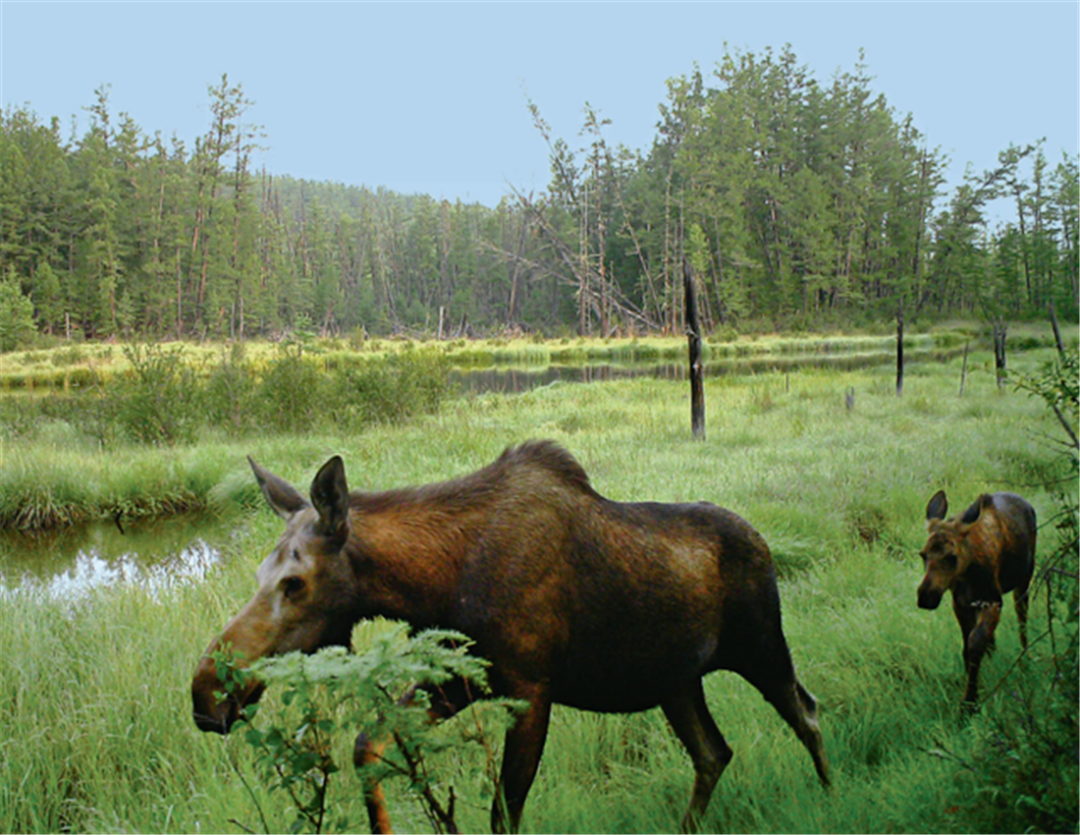 这里最大的野生动物,不是老虎,而是驼鹿。驼鹿是典型的北方针叶林食草动物,它们喜欢在林中平坦低洼地带或者沼泽地觅食,一般不会远离森林。