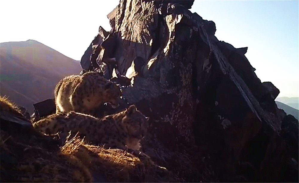 两只雪豹排排坐着看风景?这个反转挺突然的,真是没想到,雪豹没捕到食物,反倒谈起恋爱来了。“爱情”与“面包”总得拥有一样!