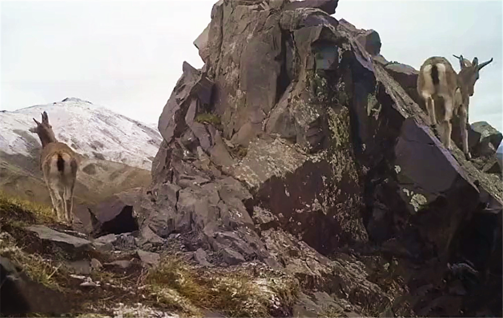 每一种野生动物在各自喜欢的环境里生活,但在一处神秘的石山上,却成了各种野生动物界的“网红打卡地”,岩羊跑上去眺望远方,雪豹追踪而来,还有狼、兔狲、雪鸡等动物,都来过这里,并被拍到了“纪念照”。