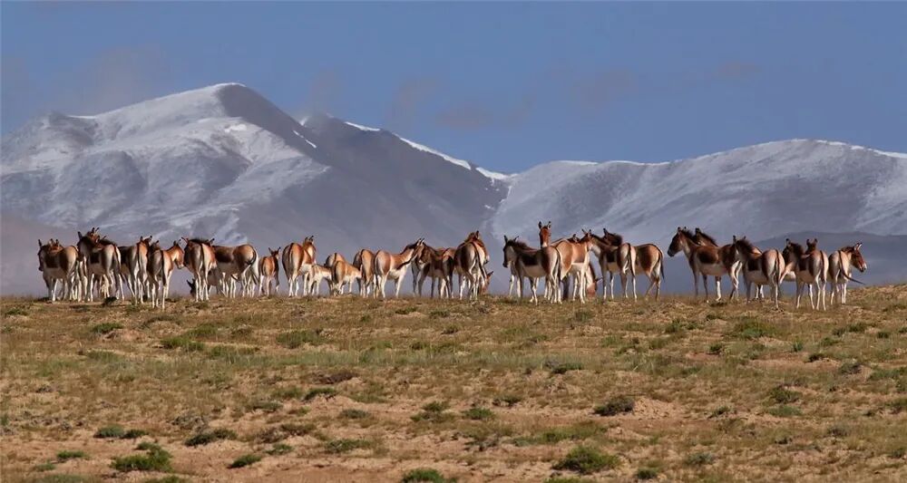 此外,藏野驴的耐寒能力和生命力也非常顽强,在夏季的时候它们一般在海拔达5000米左右的高寒荒漠地带活动。尽管这些区域食物短缺也经常找不到水喝,但是却可以成功躲避它们真正的天敌——野狼。
