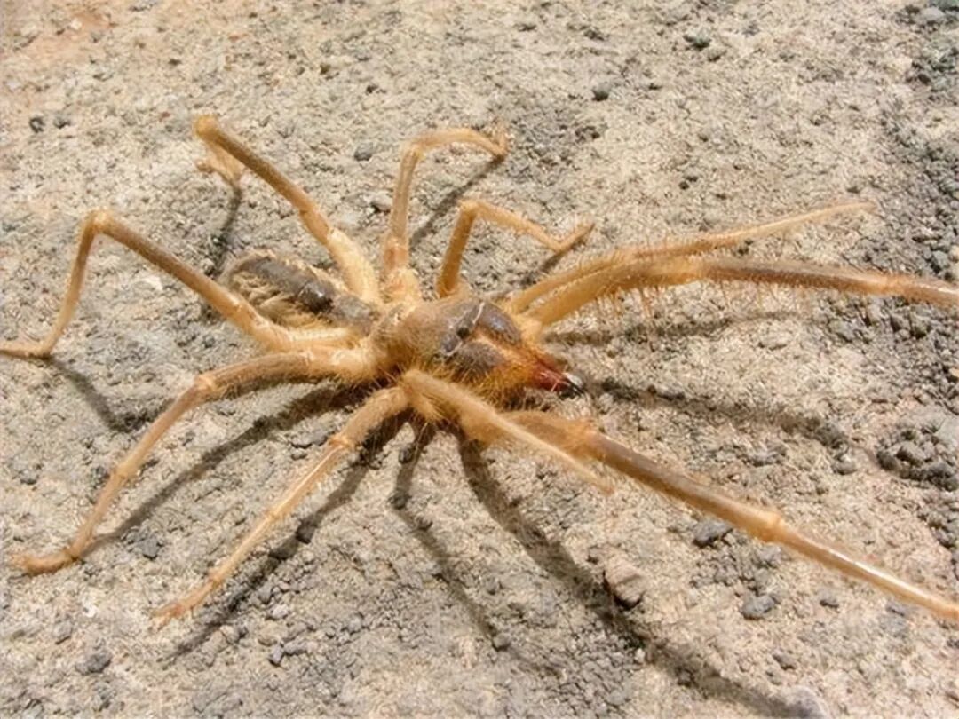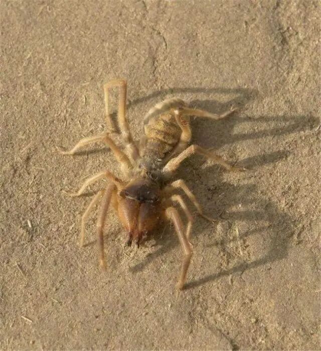 但是,很多探险家时常在骆驼尸体附近发现骆驼蜘蛛。探险家杰克说,这种世界上最大的食人蛛——骆驼蜘蛛有着非常锋利的“嘴”,它有个时候能吞下自身3倍体重的东西。