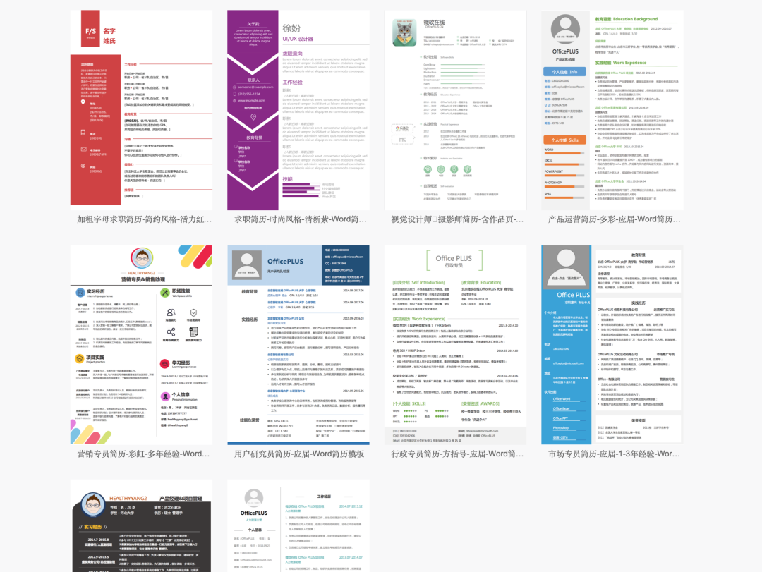 对于不会简历排版,没有任何灵感和参考的朋友。OfficePLUS.cn 提供了专业且免费的简历模版资源。