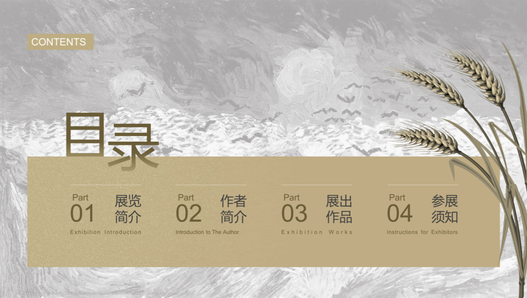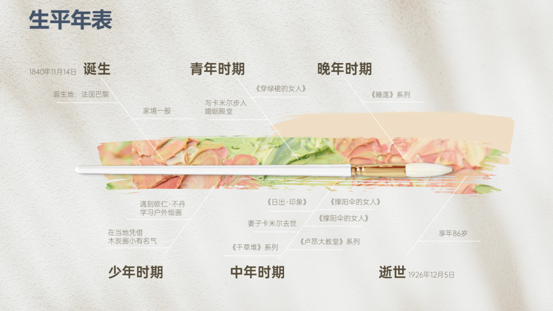 下面的这两份模板是专门针对艺术品介绍所制作的。将画家们常用的笔触和色彩,变成了一个个的设计元素。不正是我们寻找的简单又高级嘛!
