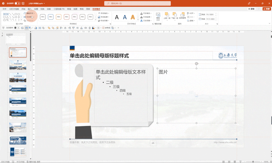 想要为所有页面添加校徽logo,还在一页一页地Ctrl+C & Ctrl+V吗?其实只需要打开母版,稍稍花一点时间就好了。